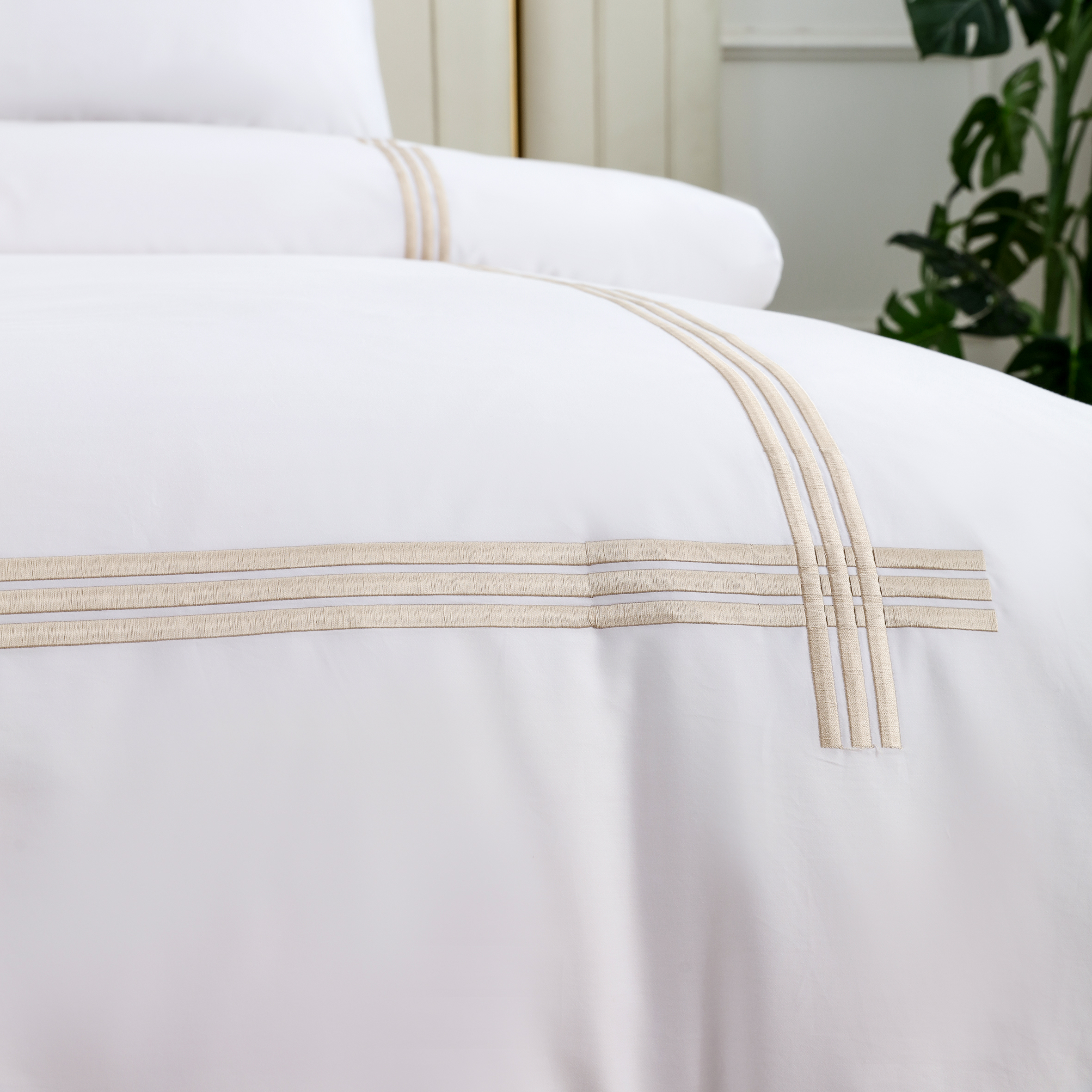 סט מצעים יוקרתי למיטה יהודית | דגם שנהב נוצות 47